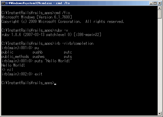 step01 InstantRails¤Îµ¯Æ°¤Èirb